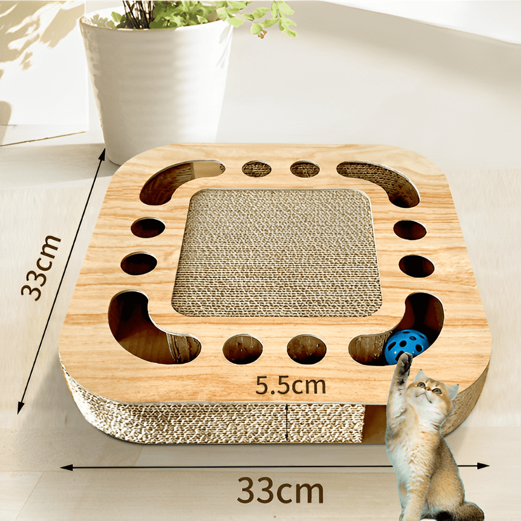 Esqueça os móveis arranhados e as cortinas rasgadas! Nosso arranhador é o playground interativo dos sonhos dos gatos, com surpresas em cada canto. Os peludinhos irão se deliciar com a textura irresistível que cuida de suas garras enquanto se divertem com a bolinha deslizando pelo brinquedo, mantendo-os entretidos durante horas.